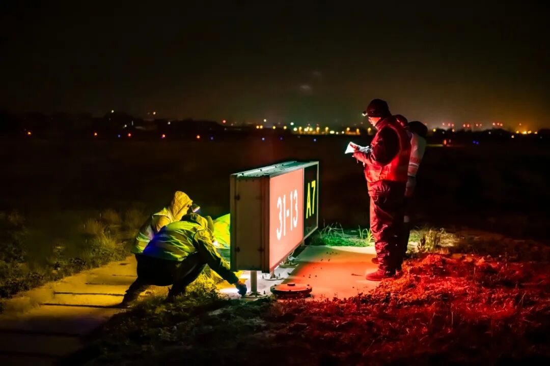 助航燈光保障環(huán)節(jié),重點驗證作業(yè)清單的適用性和可操作性。通過實操理順流程,強化各小組信息傳遞及現(xiàn)場處置能力,涵蓋回路割接和亮燈試驗、目視助航燈光燈具和滑行引導標記牌安裝、拆除和遮蔽等7個關鍵科目,通過備份工具、設備和車輛等的密切配合,確保各關鍵科目同步推進、有序?qū)嵤?/span>