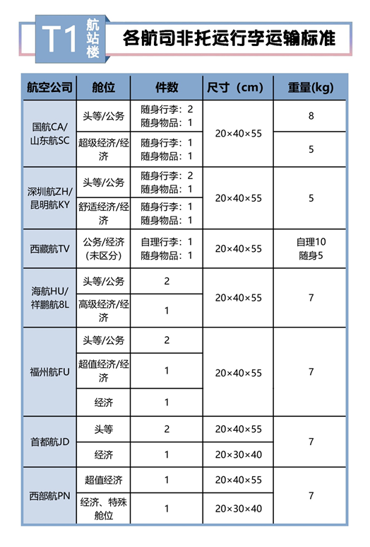 太原機(jī)場執(zhí)飛航空公司的隨身手提行李標(biāo)準(zhǔn)